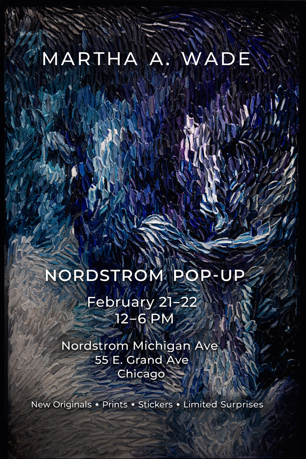 Nordstrom February Pop-Up Saturday, February 21, 2026 7:00 PM 19:00 Sunday, February 22, 2026 8:00 PM 20:00 Wadecreate, LLC 600 E. Grand Ave. Chicago, IL USA (map) Google Calendar ICS